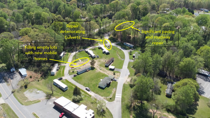 APEX MHP FUND I specializes in acquiring aging and underperforming mobile home parks, transforming them into modern, family-oriented workforce housing. Their strategic approach involves implementing extensive capital improvements and overhauling tenant demographics, ultimately revitalizing the properties to generate substantially higher rents. In this case study we acquired a mobile home park on Gastonia, NC which had been poorly maintained both in the physical aspect as well as being poorly managemed from the business side as well.